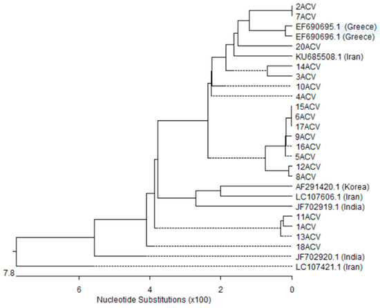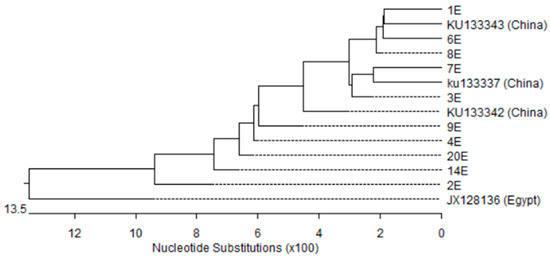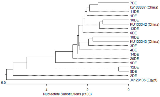 3.5. Nucleotides Sequence and Phylogenetic Analysis