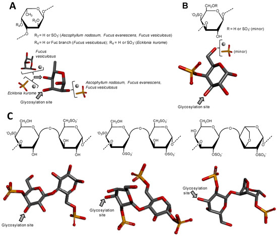 - Pomin, V.H.; Mourão, P.A.S. Structure, biology, evolution, and medical importance of sulfated fucans and galactans. Glycobiology 2008, 18, 1016–1027. [Google Scholar] [CrossRef] [PubMed]