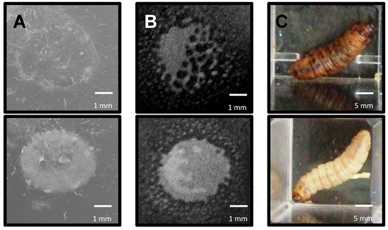 - Donato, V.; Ayala, F.R.; Cogliati, S.; Bauman, C.; Costa, J.G.; Leñini, C.; Grau, R. Bacillus subtilis biofilm extends Caenorhabditis elegans longevity through downregulation of the insulin-like signalling pathway. Nat. Commun. 2017, 8, 14332. [Google Scholar] [CrossRef] [PubMed]