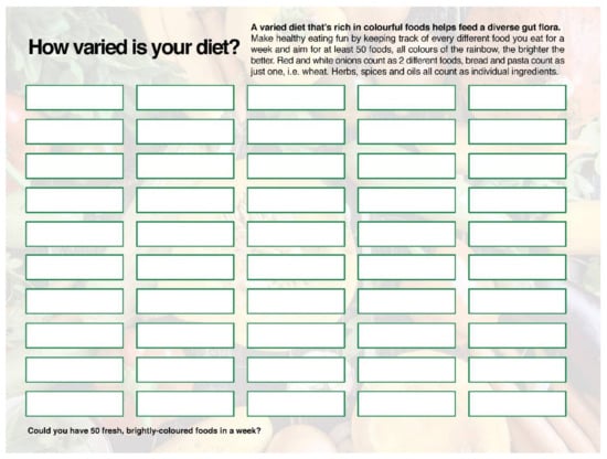 The author’s “50-food challenge” chart is an example of a simple, but powerful data collection tool used in clinical practice to engage with patients in a light-hearted way so that they report back to their practitioner on their dietary diversity. The rationale is to motivate patients to vary the foods they have every day, so that they’re increasing their micronutrient diversity, thereby feeding different classes of gut microbes.