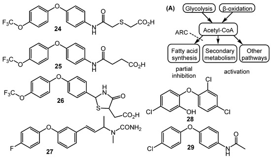 Synthetic diphenyl ethers (ARCs) as elicitors and their mode of action (A).