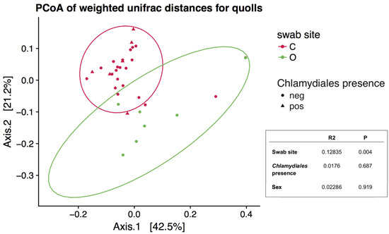 3.3. Chlamydiales Detection is Not Correlated with Changes in the Northern Quoll Microbiota