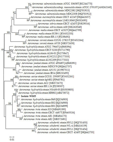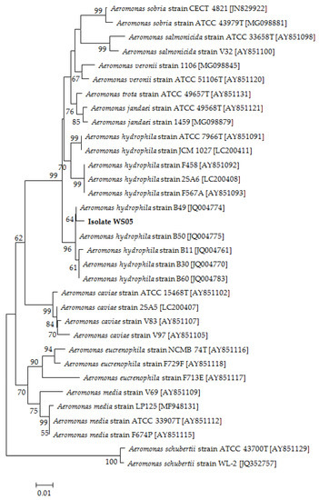 - Yáňez, M.A.; Catalán, V.; Apráiz, D.; Figueras, M.J.; Martínez-Murcia, A.J. Phylogenetic analysis of members of the genus Aeromonas based on gyrB gene sequences. Int. J. Syst. Evol. Microbiol. 2003, 53, 875–883. [Google Scholar] [CrossRef]