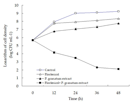 3.5. The in Vitro Activity of Florfenicol-P. granatum Extract