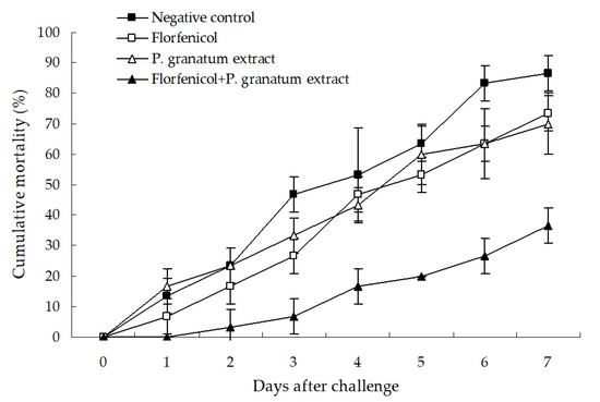 3.6. Protective Effect of Florfenicol-P. granatum Extract
