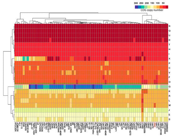 For this reason, strain DSM20258 is employed for further analysis along with the reassembled genome (L. paracasei Lbs2). Interestingly, hierarchical clustering of COG categories frequency revealed that both the Lbs2 and DSM20258 strains are in the same cluster (Figure 2).
