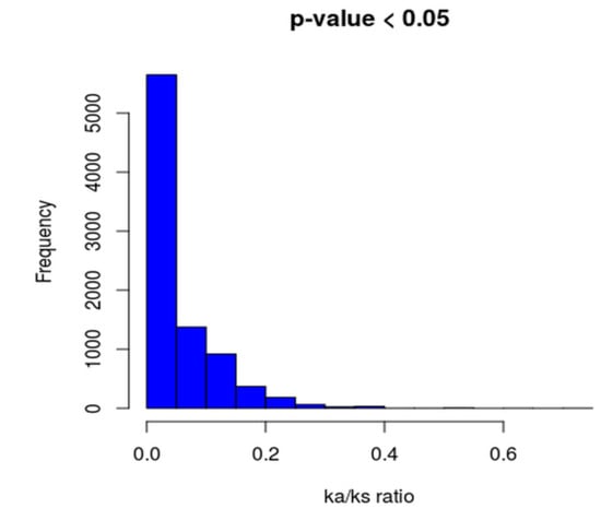Histogram illustrating Ka/Ks ratios of each core gene.