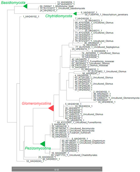 - Glomeromycota PHYLOGENY, Phylogeny and Taxonomy of Glomeromycota. Available online: www.amf-phylogeny.com (accessed on 2 September 2019).