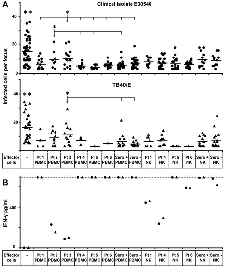 - Wu, Z.; Sinzger, C.; Reichel, J.J.; Just, M.; Mertens, T. Natural killer cells can inhibit the transmission of human cytomegalovirus in cell culture by using mechanisms from innate and adaptive immune responses. J. Virol. 2015, 89, 2906–2917. [Google Scholar] [CrossRef] [PubMed]