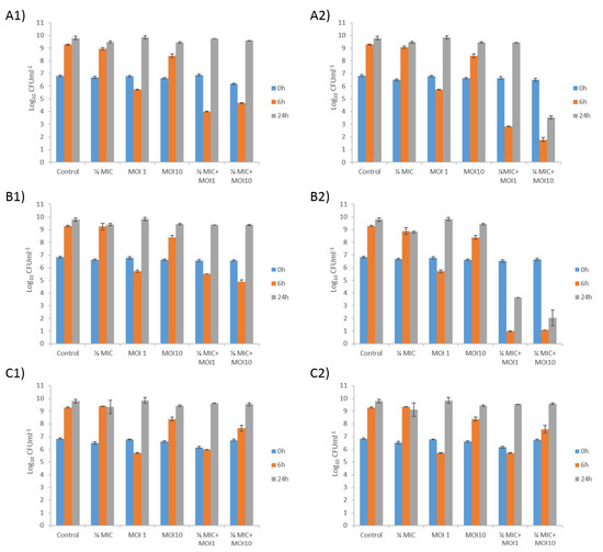 3.6. Effect of the Combination of Phage and Antibiotic on the Bacterial Killing Assays