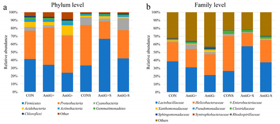 - Choi, J.H.; Lee, K.; Kim, D.W.; Kil, D.Y.; Kim, G.B.; Cha, C.J. Influence of dietary avilamycin on ileal and cecal microbiota in broiler chickens. Poult. Sci. 2018, 97, 970–979. [Google Scholar] [CrossRef]