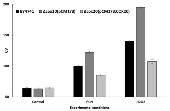 3.1. Overexpression of COX20 Protects Yeast Cells from Oxidative Stress