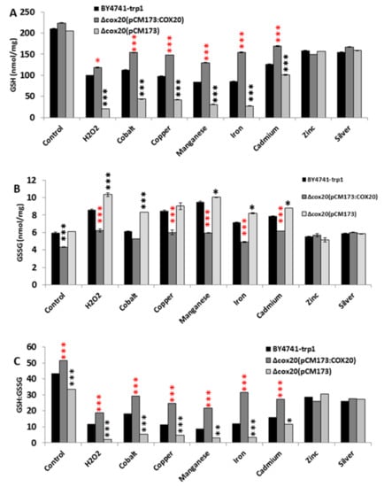 3.2. COX20 Overexpression Protects the Cell from Glutathione Becoming Oxidized