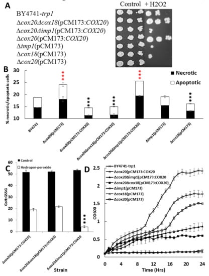 APA StyleKeerthiraju, E., Du, C., Tucker, G., & Greetham, D. (2019). A Role for COX20 in Tolerance to Oxidative Stress and Programmed Cell Death in Saccharomyces cerevisiae. Microorganisms, 7(11), 575. https://doi.org/10.3390/microorganisms7110575