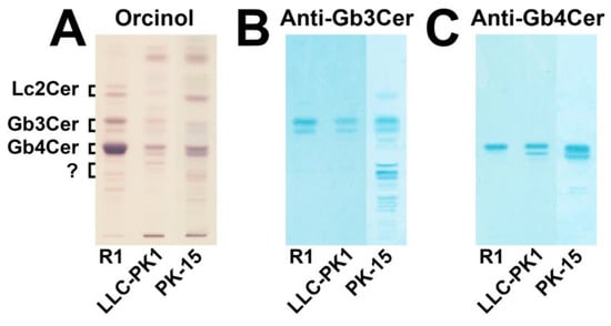 3.1. Immunochemical Detection of Gb3Cer and Gb4Cer in GSL Preparations of LLC-PK1 and PK-15 Cells