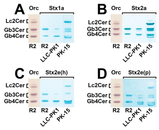 3.2. Identification of Stx-Binding GSLs Expressed by LLC-PK1 and PK-15 Cells
