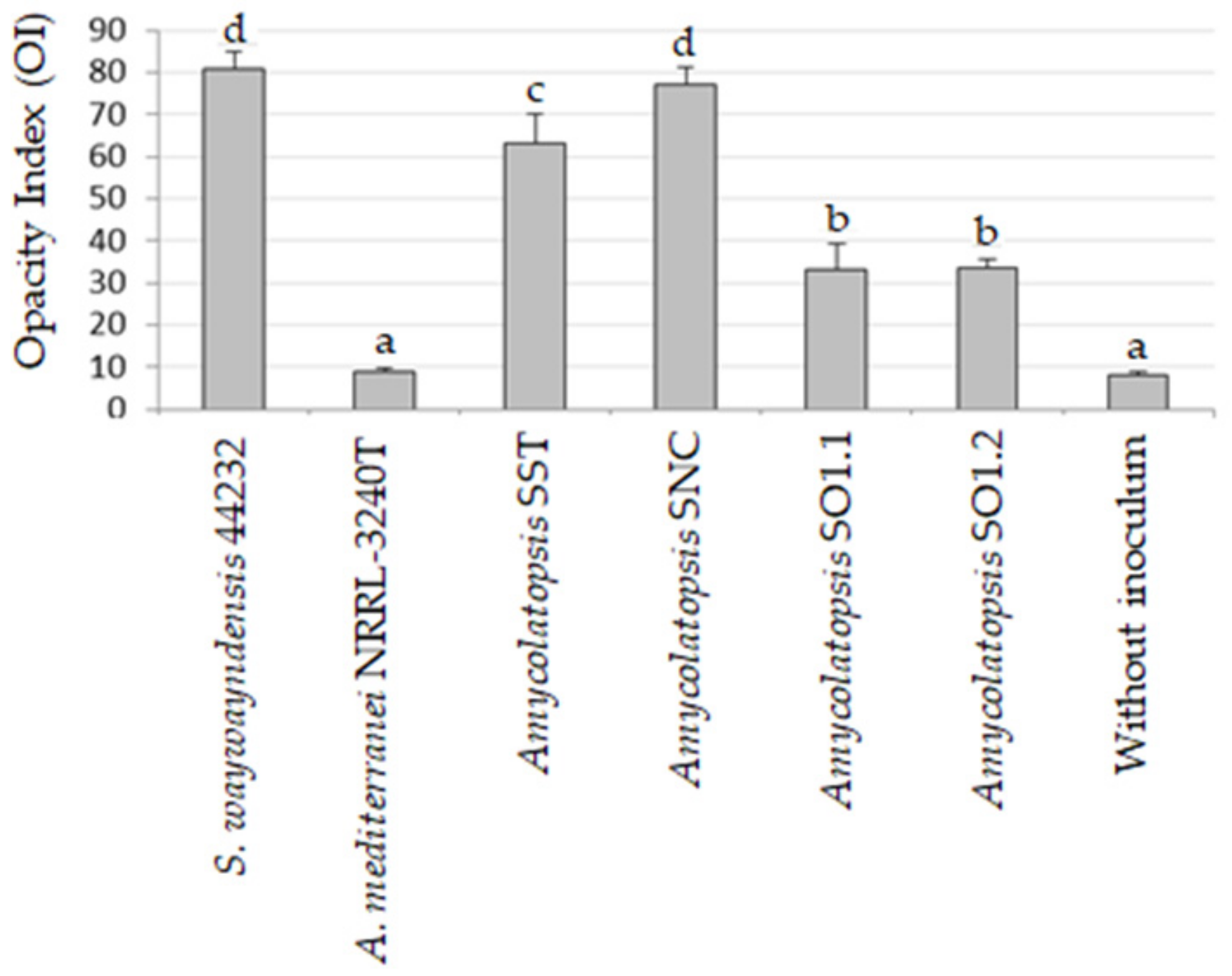 3.1. Isolation of Actinomycetes able to Degrade Emulsified PLA