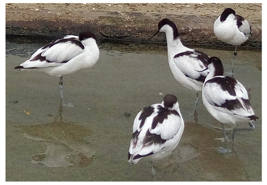 - Joest, R. Junge Säbelschnäbler (Recurvirostra avosetta L.) in unterschiedlichen Klimazonen: Physiologische und ethologische Anpassungen an ökologische Bedingungen in Norddeutschland und Südspanien; Christian-Albrechts Universität Kiel: Kiel, Germany, 2003. [Google Scholar]