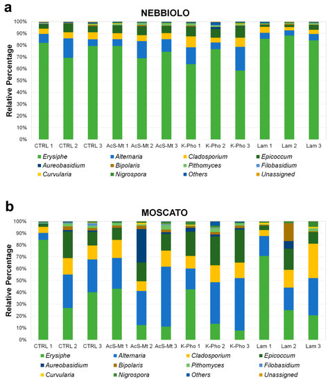 Chicago/Turabian StyleNerva, Luca, Chiara Pagliarani, Massimo Pugliese, Matteo Monchiero, Solène Gonthier, Maria Lodovica Gullino, Giorgio Gambino, and Walter Chitarra. 2019. "Grapevine Phyllosphere Community Analysis in Response to Elicitor Application against Powdery Mildew" Microorganisms 7, no. 12: 662. https://doi.org/10.3390/microorganisms7120662