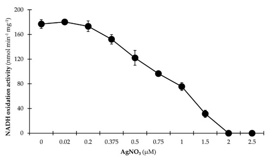 3.2.2. NADH Dehydrogenase Activity Is Inhibited by Micromolar Ag+