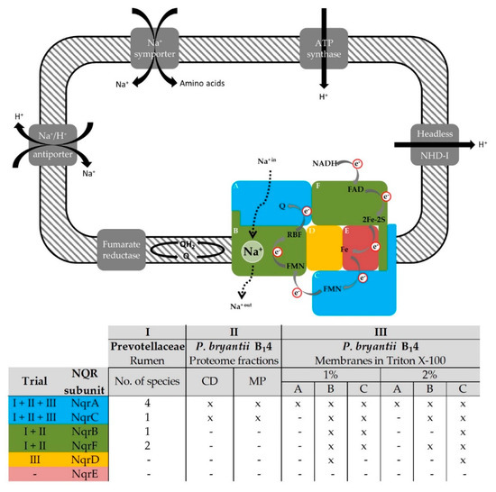 3.1.2. NQR Subunits Detected in Fractions of the Prevotella bryantii B14 Proteome
