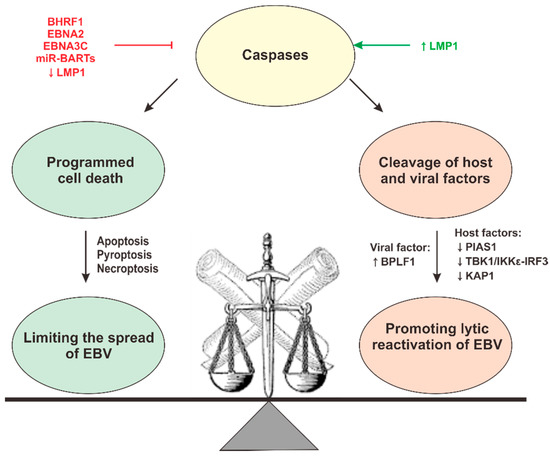 The intricate balance between the proviral and antiviral roles of caspases during EBV infection is depicted in Figure 4.