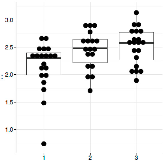 Association of cortisol with the Shannon index of microbiota diversity. Data are: Y-axis is Shannon index, X-axis: 1, 2, 3 are Tertiles (T) of cortisol level, p = 0.006 for T1 versus T3 by Mann–Whitney test.