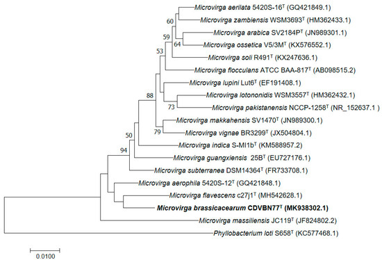 Therefore, we performed a phylogenetic analysis of the 16S rRNA gene sequence of strain CDVBN77T and those of the type strains of all species included within the genus Microvirga.
