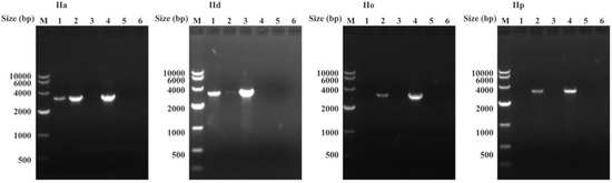 The amplification efficiency of IIa-5520-5510-1 was lower than that of the other copy in PCR analysis of the IIa subtype, while the efficiency of IId-5520-5510-1, which had the highest sequence identity (over 99%) to IIa-5520-5510-1, was higher than that of the other copy in the PCR analysis of the IId subtype. We also used these copy-specific primers to amplify the cgd6_5520-5510 gene from genomic DNA of the IIc, IIo, and IIp subtypes, and obtained PCR products by one of the primer sets, which generated the same sequence we obtained above for each subtype.
