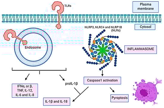 - Lamkanfi, M.; Dixit, V.M. Inflammasomes: Guardians of cytosolic sanctity. Immunol. Rev. 2009, 227, 95–105. [Google Scholar] [CrossRef]