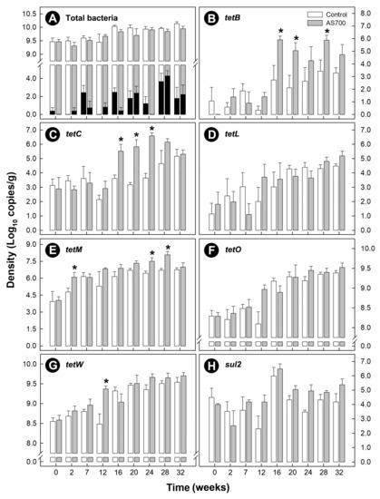 - Wu, N.; Qiao, M.; Zhang, B.; Cheng, W.D.; Zhu, Y.G. Abundance and diversity of tetracycline resistance genes in soils adjacent to representative swine feedlots in China. Environ. Sci. Technol. 2010, 44, 6933–6939. [Google Scholar] [CrossRef]