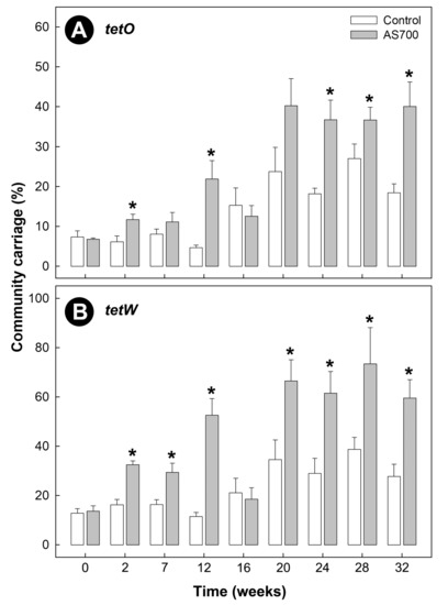 - Scott, K.P.; Melville, C.M.; Barbosa, T.M.; Flint, H.J. Occurrence of the new tetracycline resistance gene tet(W) in bacteria from the human gut. Antimicrob. Agents. Chemother. 2000, 44, 775–777. [Google Scholar] [CrossRef]