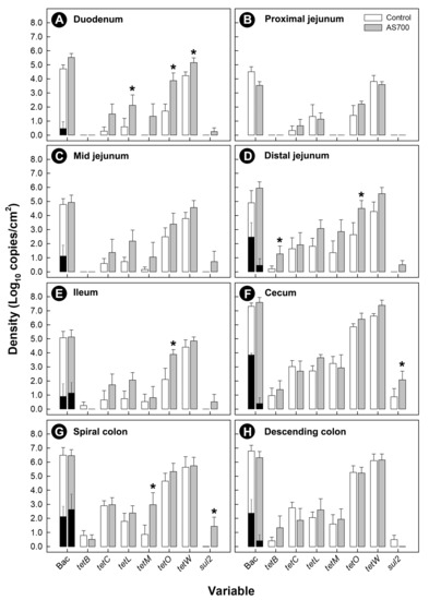 - Brown, K.; Zaytsoff, S.J.; Uwiera, R.R.; Inglis, G.D. Antimicrobial growth promoters modulate host responses in mice with a defined intestinal microbiota. Sci. Rep. 2016, 6, 38377. [Google Scholar] [CrossRef] [PubMed]