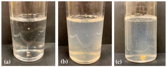 Formation of cell aggregates in liquid medium: (a) Consortium 112, (b) Pseudonocardia sp. TS06, and (c) Variovorax sp. TS13.