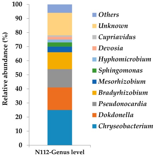 Relative abundance of bacteria at the genus level in the microbial consortium N112 (27th generation).
