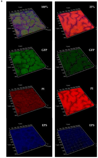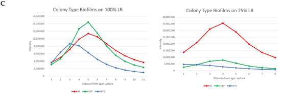 2.4. Multi-Stain Visualization of Colony-Type Biofilms