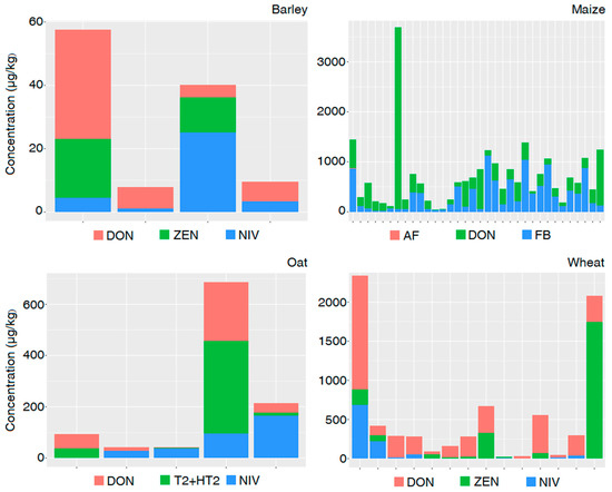 Occurrence and Co-Occurrence of Mycotoxins in Cereal-Based Feed and Food