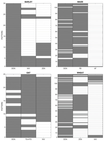 | Pattern | DON | T2/HT2 | NIV | % | Pattern | DON | NIV | ZEN | % |