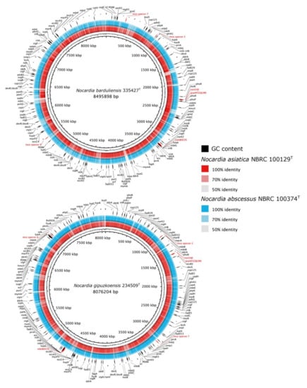 Nouioui, I.; Cortés-Albayay, C.; Neumann-Schaal, M.; Vicente, D.; Cilla, G.; Klenk, H.-P.; Marimón, J.M.; Ercibengoa, M. Genomic Virulence Features of Two Novel Species Nocardia barduliensis sp. nov. and Nocardia gipuzkoensis sp. nov., Isolated from Patients with Chronic Pulmonary Diseases. Microorganisms 2020, 8, 1517. https://doi.org/10.3390/microorganisms8101517