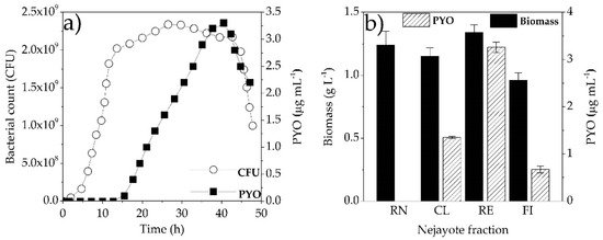 Bacame-Valenzuela, F.J.; Pérez-Garcia, J.A.; Figueroa-Magallón, M.L.; Espejel-Ayala, F.; Ortiz-Frade, L.A.; Reyes-Vidal, Y. Optimized Production of a Redox Metabolite (pyocyanin) by Pseudomonas aeruginosa NEJ01R Using a Maize By-Product. Microorganisms 2020, 8, 1559. https://doi.org/10.3390/microorganisms8101559