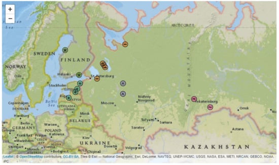 - Federal Service for Surveillance on Consumer Rights Protection and HumanWellbeing (Rospotrebnadzor) Statistical Materials. Available online: https://www.rospotrebnadzor.ru/activities/statistical-materials/ (accessed on 13 July 2020).