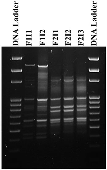 2.7. Determining the DNA Fingerprint Profiles of the E. coli Isolates Using BOX-PCR
