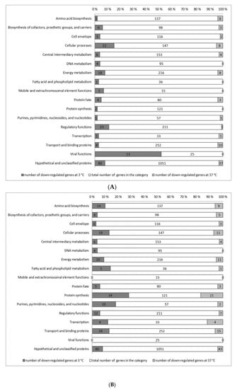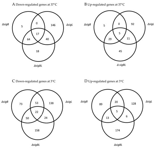 3.4. Genes Down-Regulated in ∆sigB During Exponential Growth in BHI at 37 °C