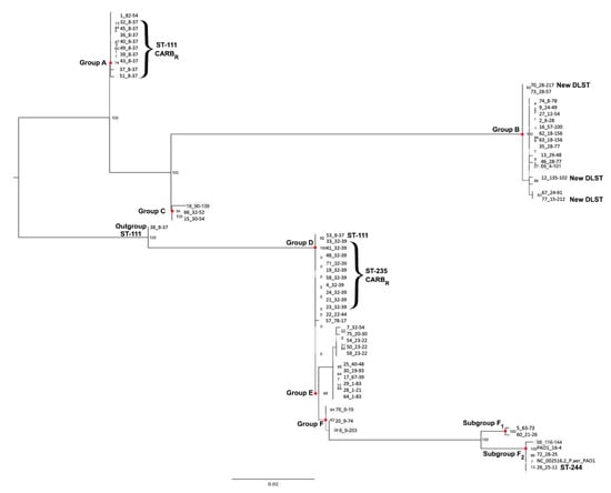 - Basset, P.; Blanc, D.S. Fast and simple epidemiological typing of Pseudomonas aeruginosa using the double-locus sequence typing (DLST) method. Eur. J. Clin. Microbiol. Infect. Dis. 2014, 33, 927–932. [Google Scholar] [CrossRef] [PubMed]