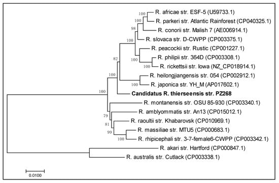 - Diop, A.; El Karkouri, K.; Raoult, D.; Fournier, P.-E. Genome sequence-based criteria for demarcation and definition of species in the genus Rickettsia. Int. J. Syst. Evol. Microbiol. 2020, 70, 1738–1750. [Google Scholar] [CrossRef] [PubMed]