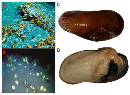 7. Duperron, S.; Lorion, J.; Samadi, S.; Gros, O.; Gaill, F. Symbioses between deep-sea mussels (Mytilidae: Bathymodiolinae) and chemosynthetic bacteria: Diversity, function and evolution. C. R. Biol. 2009, 332, 298–310. [Google Scholar] [CrossRef] [PubMed]