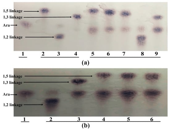30]. However, the specific activity of β-galactosidase and α-arabinofuranosidase showed that both strains have extracellular oligosaccharide-degrading activities. In addition, analysis of substrate specificity showed that extracellular β-galactosidases and α-arabinofuranosidases of both strains are able to cleave all types of glycosidic linkages of AG. These results likely indicate that