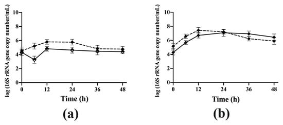 Bac. caccae ATCC 43185 in mono and co-culture were quantified by the ddPCR system following the manufacturer’s instructions. Briefly, a total of 25 μL of each reaction mixture contained 12.5 μL of QX200 ddPCR EvaGreen supermix, 5 μL of DNA, and 0.7 μL each of 10 μM forward and reverse primers (