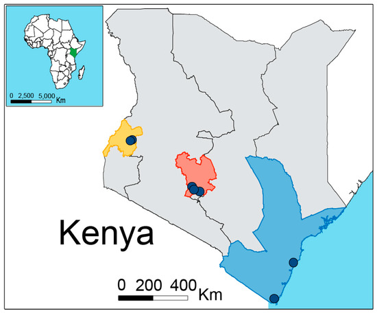 - Muli, E.; Patch, H.; Frazier, M.; Frazier, J.; Torto, B.; Baumgarten, T.; Kilonzo, J.; Kimani, J.N.; Mumoki, F.; Masiga, D.; et al. Evaluation of the distribution and impacts of parasites, pathogens, and pesticides on honey bee (Apis mellifera) populations in east Africa. PLoS ONE 2014, 9. [Google Scholar] [CrossRef]
