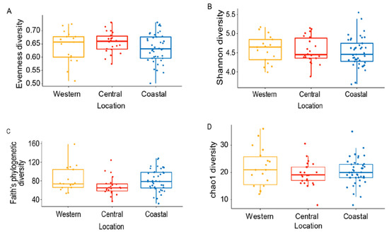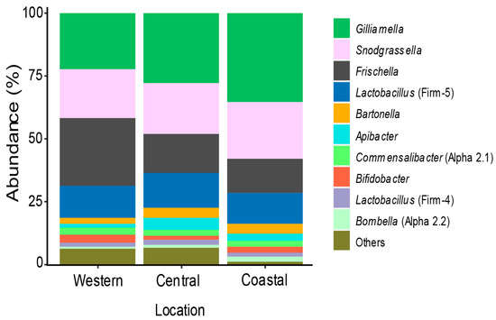 3.2. Variation of Honey Bee Gut Microbiota Across the Locations